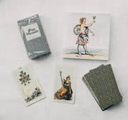 All imagery in this 84-card deck is hand-painted using traditional oils by Linnea Gits and all copy is hand-lettered by Peter Dunham. The deck's inspiration is the soulful spirit of nature, early Celtic mysticism, and Renaissance etching and paintings' luminous beauty.